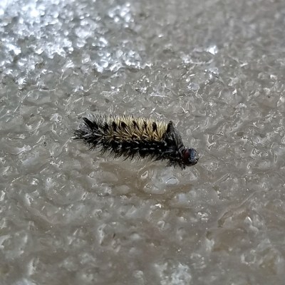 Ctenucha Moth (Ctenucha virginica) and other caterpillars are also coming out of hibernation venturing out onto the snow it seems not wanting to wait for the really warm weather. I found this Ctenucha Moth caterpillar (below) and several others in the late afternoon (April 22) on some icy snow floating in a flooded field. They were soaked and looked dead but after a few minutes in my hands perked up so I moved them to some higher and drier ground. Ctenucha Moth caterpillars overwinter as immature larvae. When warm spring weather comes back they emerge from hiding and begin to eat grasses and sedges their primary food plants. In a few weeks they are fully grown and pupate. By early summer the Ctenucha Moths hatch from their pupa to start the process over. Ctenucha Moths are in the Subfamily Arctiinae which includes the familiar Woolly Bear (Pyrrharctia isabella).