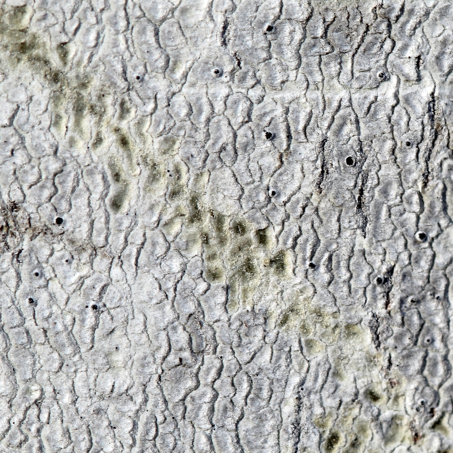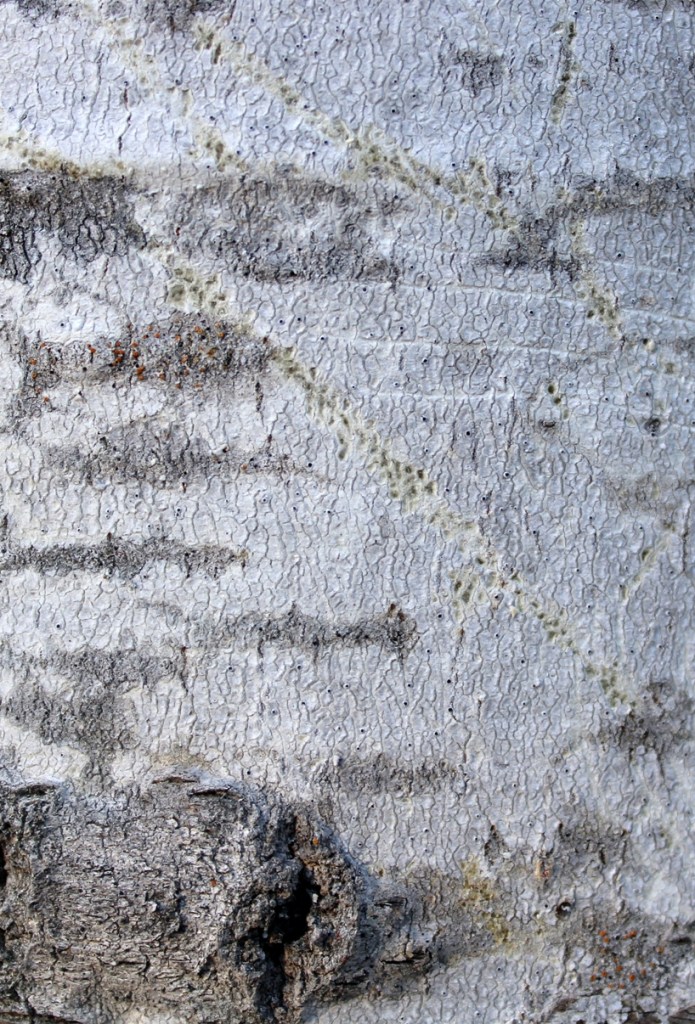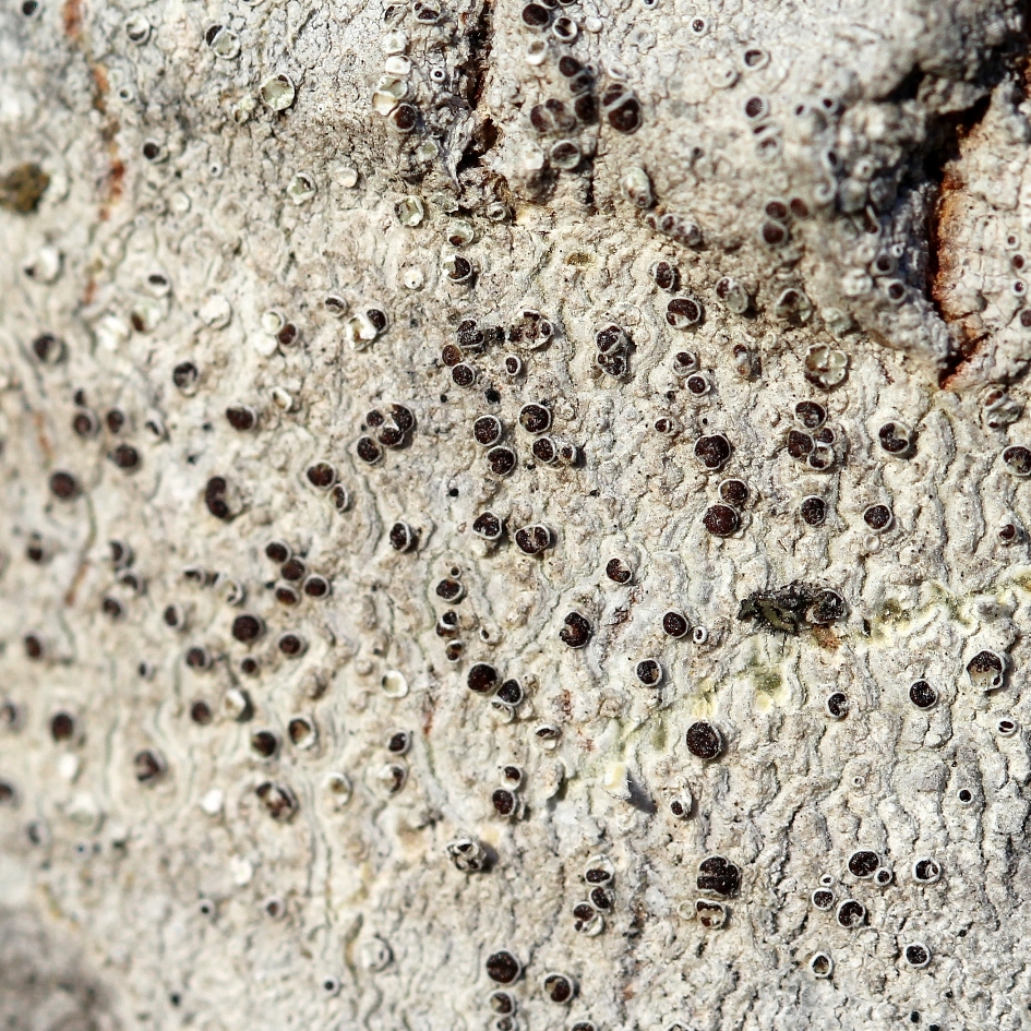 As I focused the camera, I noticed the scratches were cutting not through the bark but a thin layer of lichen growth and just barely affecting the tree bark below. The smooth gray bark I had been admiring all these years was really a lichen. Even the dark rough patches, known as lenticels, were covered in minute lichens. I wondered how I had missed these lichens for so many years.