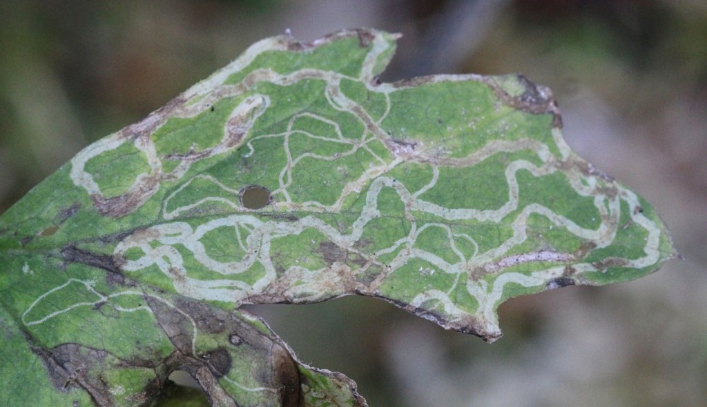 While I’m not absolutely certain, the leaf mines in the other four plants were probably made by the larvae of leaf mining flies in the genus Phytomyza, also in the family Agromyzidae.
