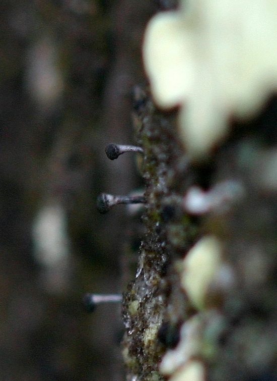 On some of the moss plants there is bumpy green growth that may be an algae (Coccomyxa?). Is this Omphalina mushroom part of a basidiolichen and not a mere saprophyte?