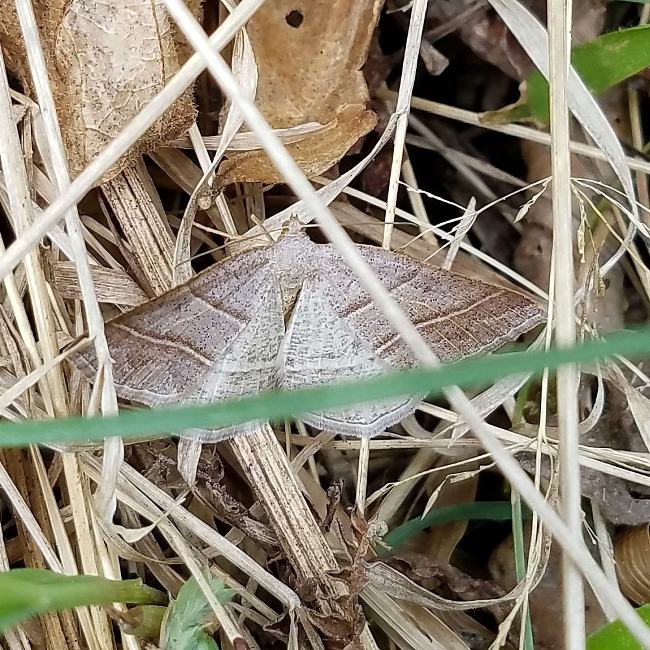 I was out taking a walk Sunday afternoon and saw many different small moths flying out from hiding in the grass and blueberry bushes. Most were too small and fast to get a good look at them. The one shown above flew and ducked under some grass blades just long enough for me to get a few snapshots before it took off. Later I went out again and saw dozens of them in a forest clearing full of bracken fern. The species is Northern Petrophora (Petrophora subaequaria, Family Geometridae) and its larvae feed only on ferns with bracken fern (Pteridium aquilinum) apparently the principle host plant. Photos at Bug Guide show the larvae on fronds of Osmunda fern.