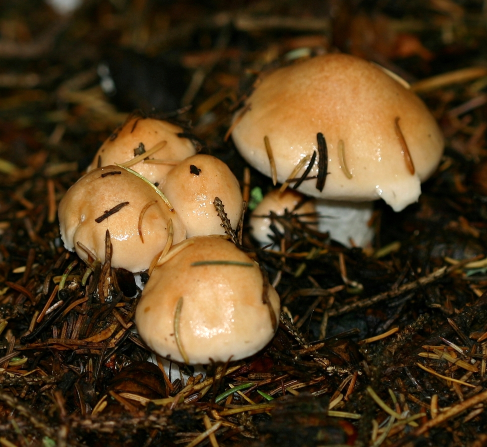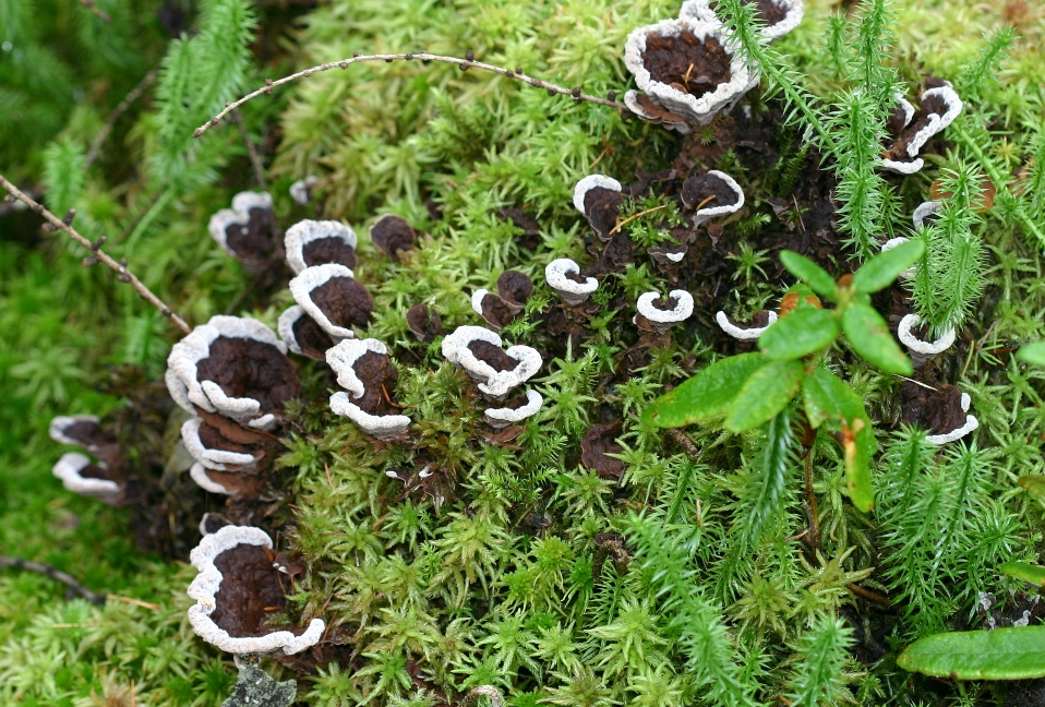 Arceuthobium pusillum is a minute perennial shrublet parasitic on the branches of bog conifers, primarily back spruce. Although photosynthetic to a limited extent, all of its other nutritional needs are derived from the host plant.